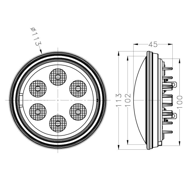 Electronic Thermal ManagementFull output at +35°C ambiant, 25 % dimmed at + 50°C ambiantOperation Temperatures-40°C to +85°C
